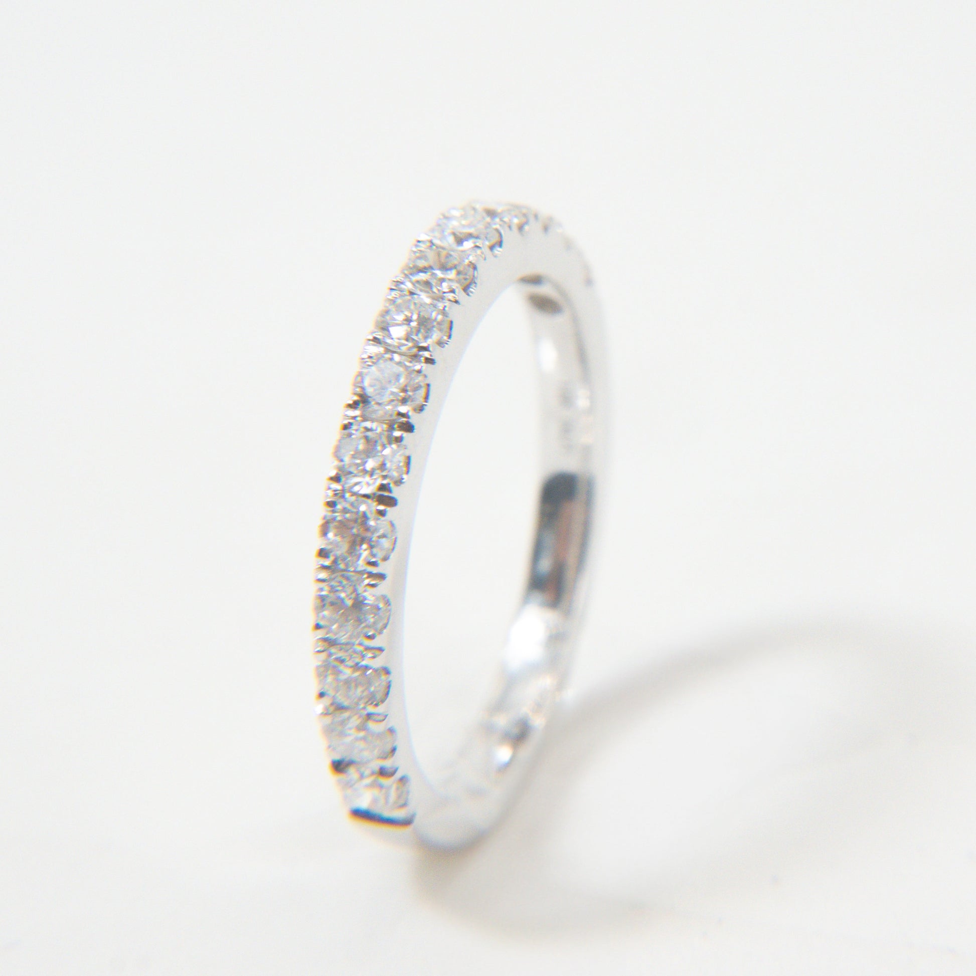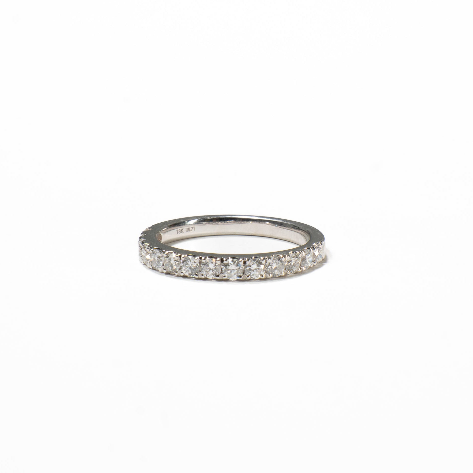 A Meia Aliança Diamantes é uma joia produzida em ouro branco 18k e 0,71 quilates de diamantes, unindo beleza e durabilidade incomparáveis.