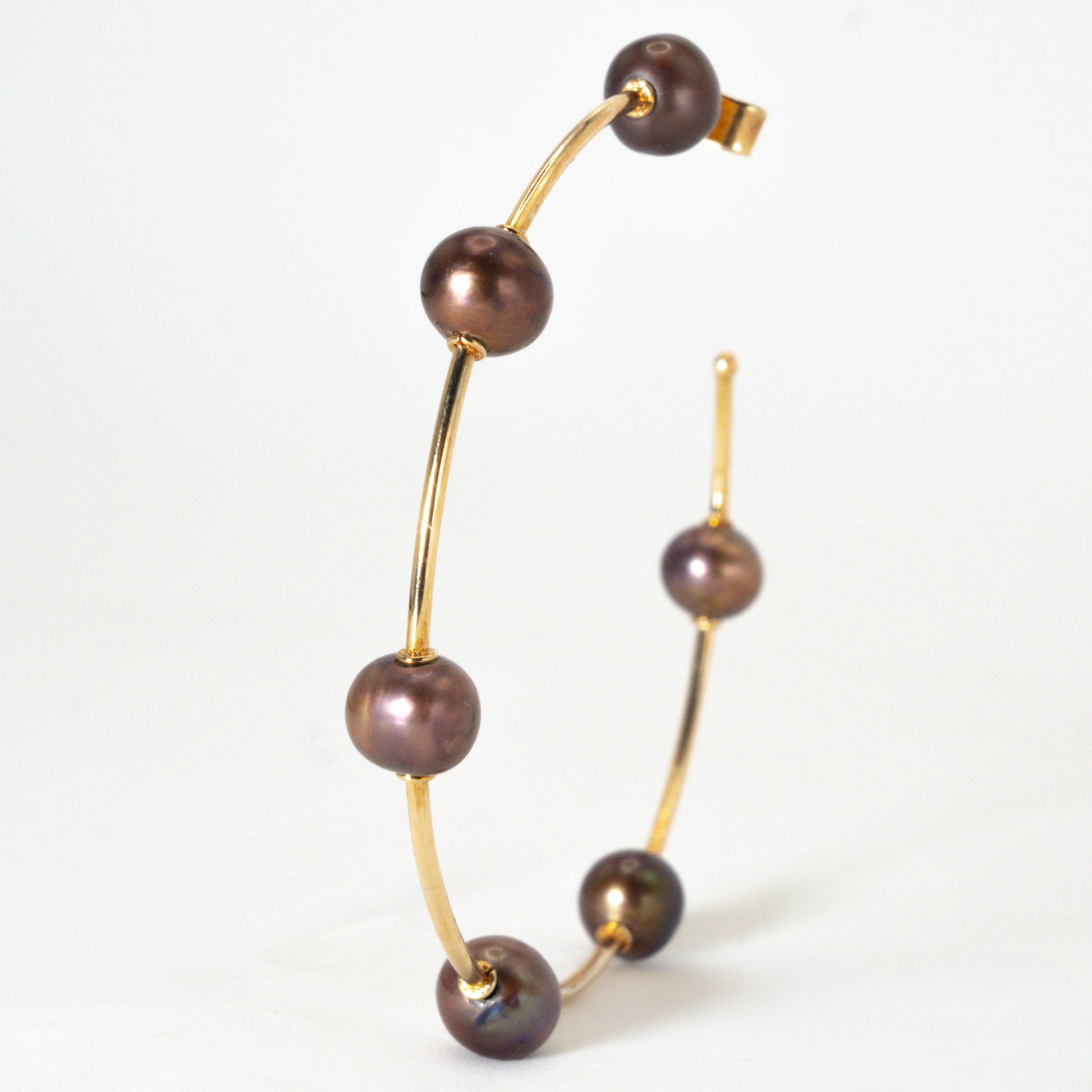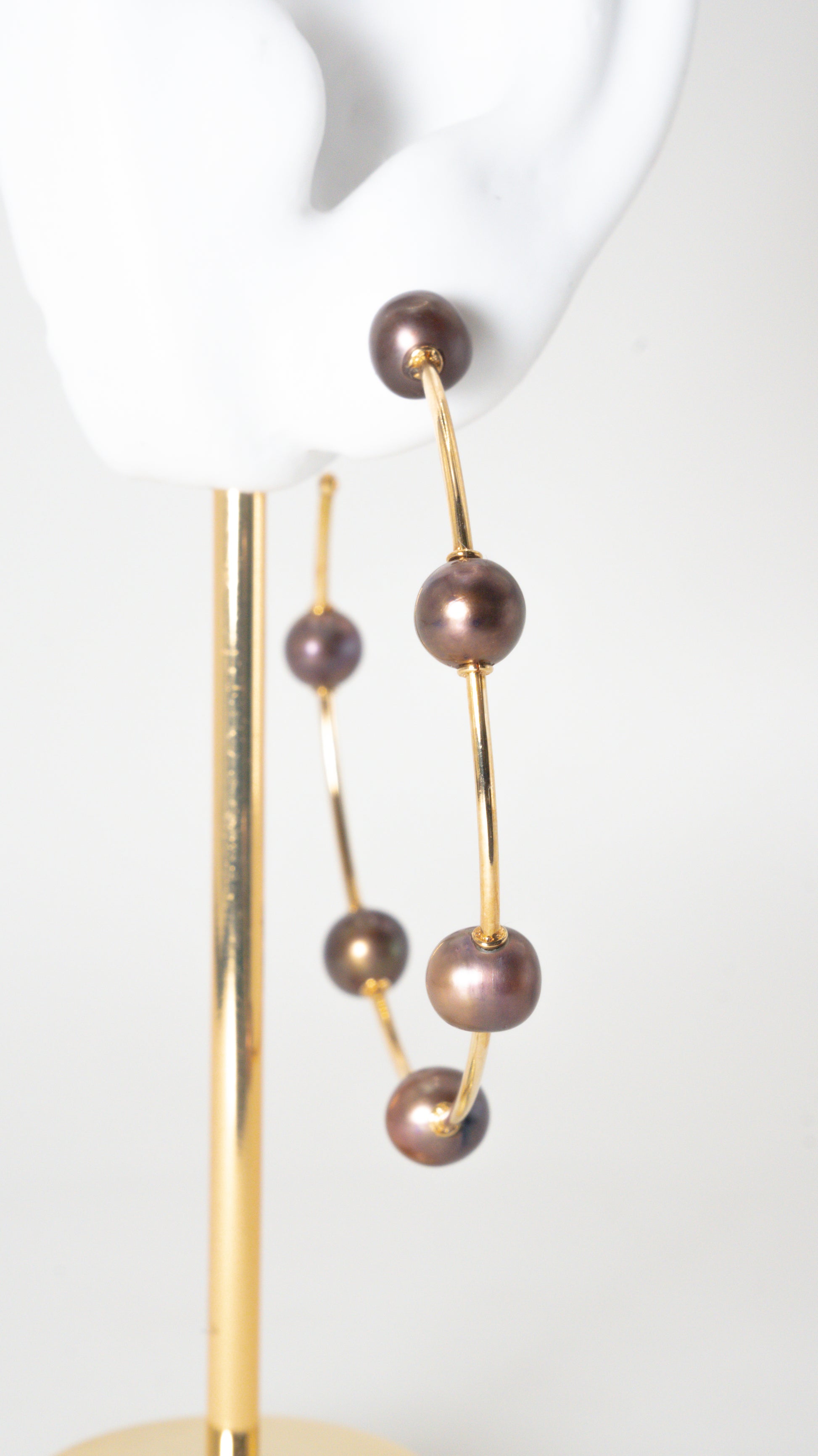 A Brinco Argola Negra Poema G é mais que um acessório: é uma expressão de estilo e significado. Produzida artesanalmente em ouro amarelo 18 k e perolas negras, unindo beleza e durabilidade incomparáveis.