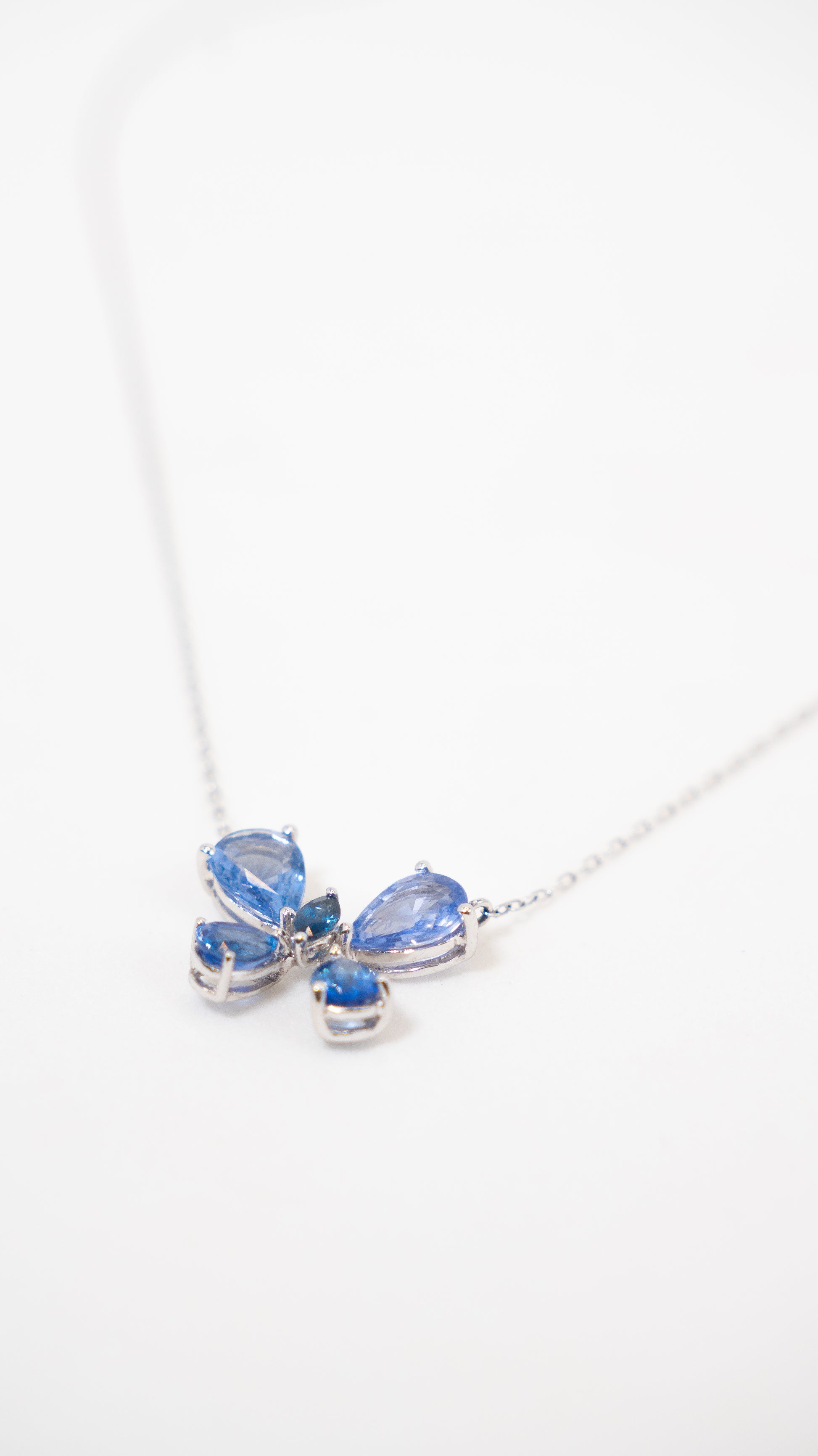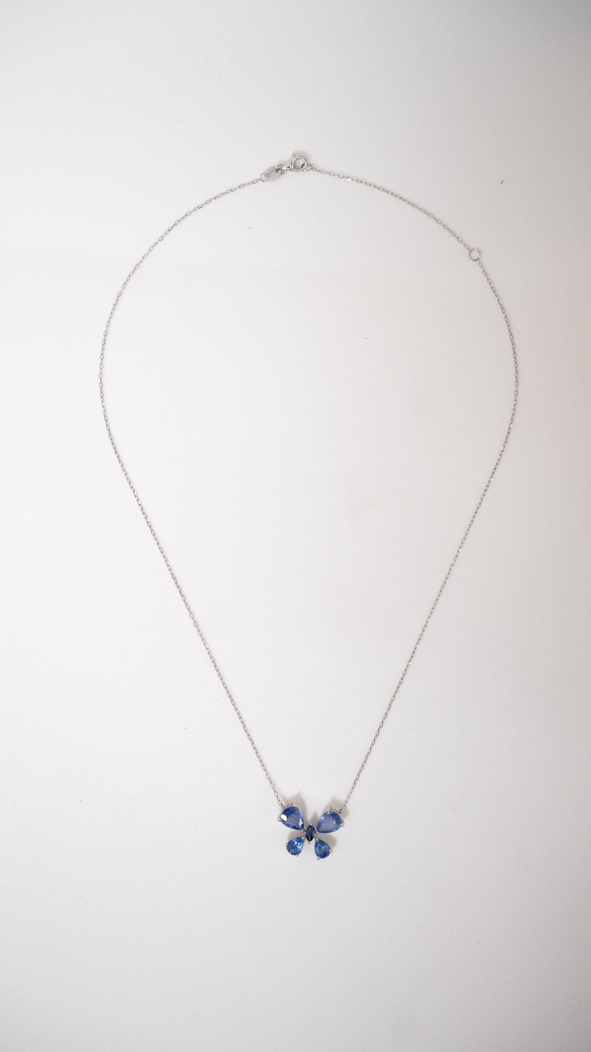 A Colar Borboleta Safira é mais que um acessório: é uma expressão de estilo e significado. Produzida artesanalmente em ouro branco 18k, e safiras azuis, unindo beleza e durabilidade incomparáveis.